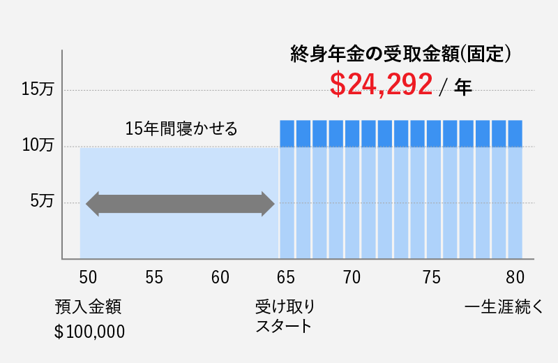 ご契約者様がご健在の限り、一生涯にわたり年金受給が続くオプションです。